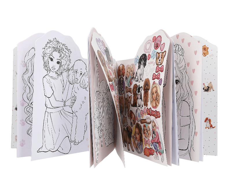Карандаши в лапы — и вперед! Раскраска TOPModel «Собачки» содержит 21 страницу с замечательными изображениями собак и контуров для увлекательного раскрашивания. Гав-гав: разворот с наклейками в центре книжки и фигурная обложка с изображением щенков.