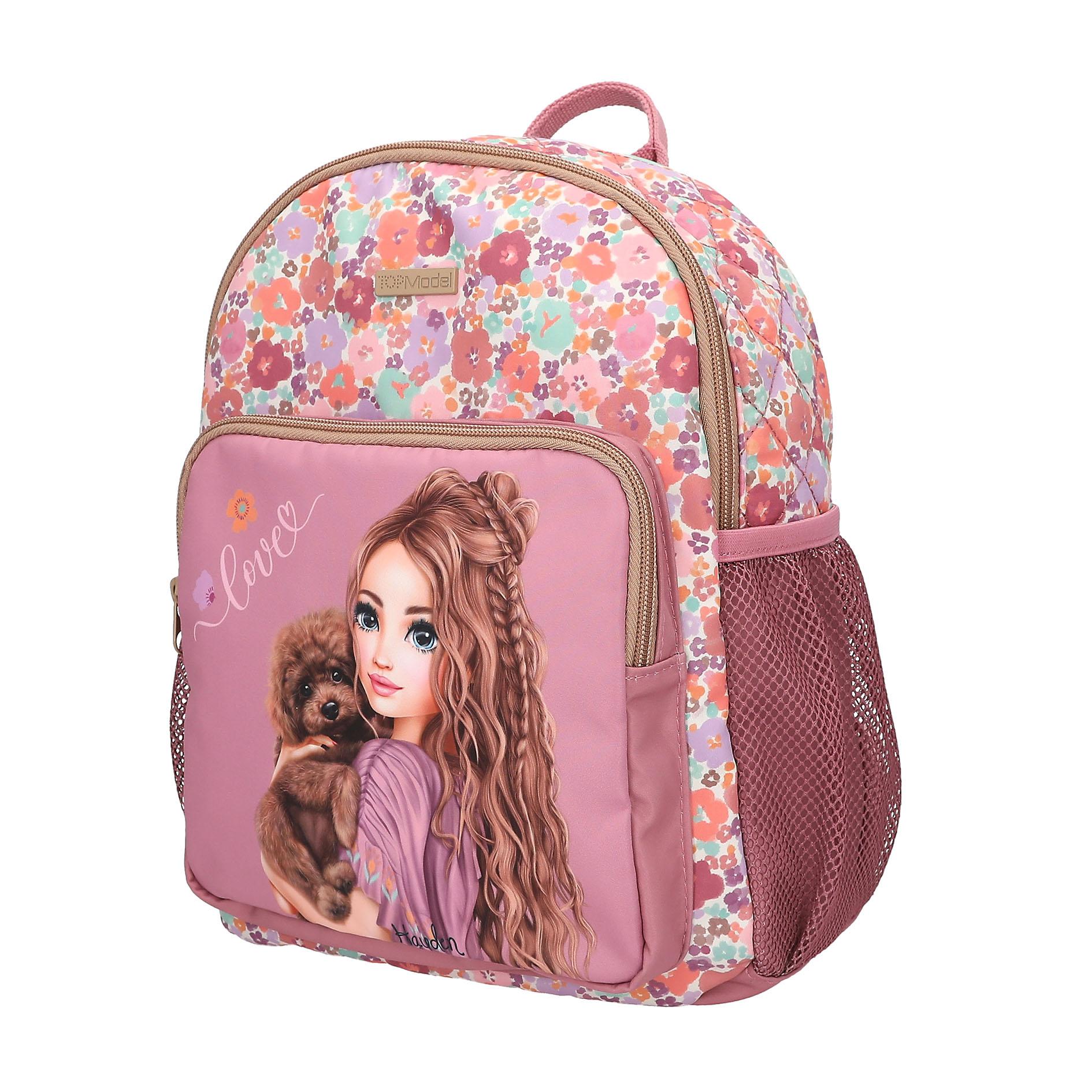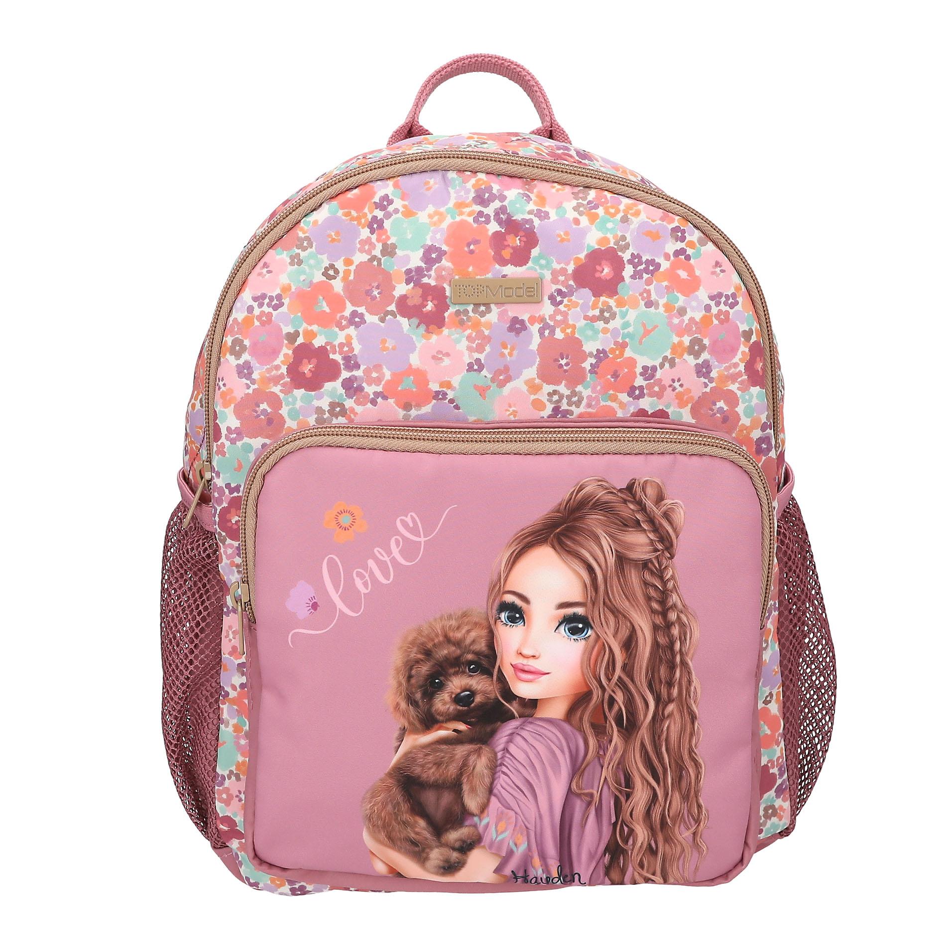 Фантастический цветочный принт 🌸 Этот вместительный рюкзак ягодного цвета из новой серии TOPModel украшен стильным изображением модели и очаровательной собачкой на переднем кармане. Основное отделение рюкзака с цветочным принтом имеет модную ромбовидную стежку. Мягкие регулируемые плечевые лямки. Основной материал: 100% полиэстер В 31 x Ш 25 x Г 13 см Рекомендуемый возраст: 6+