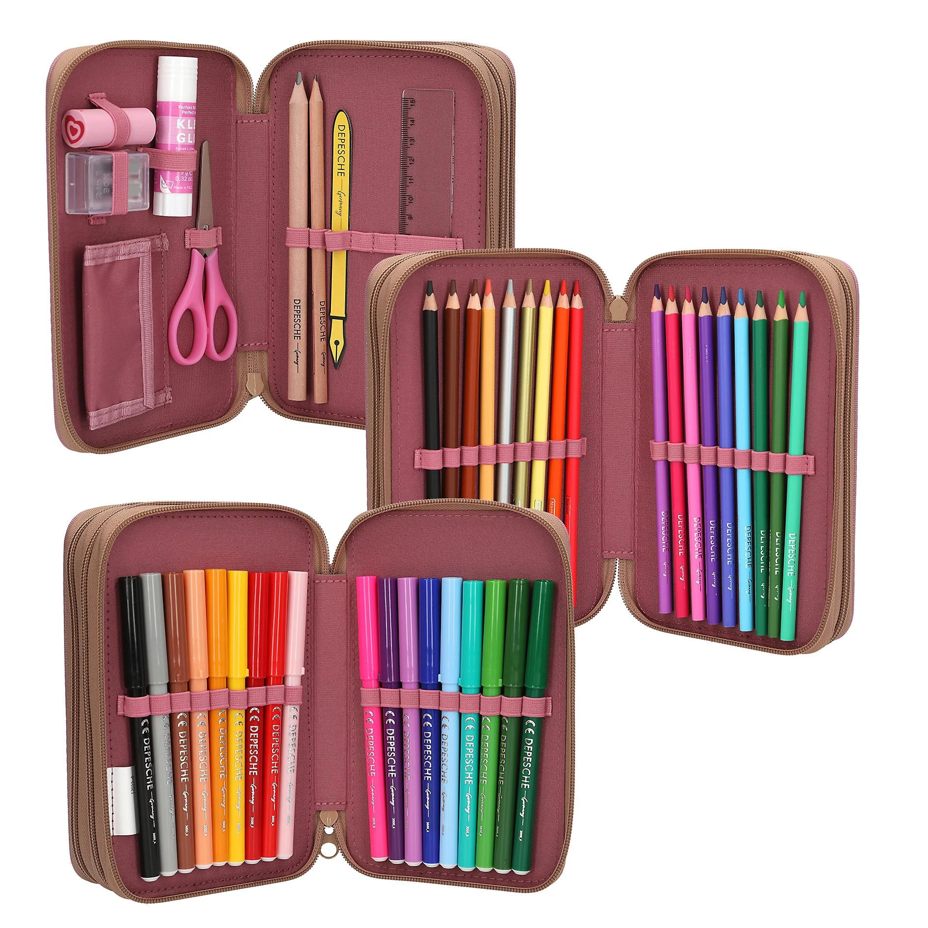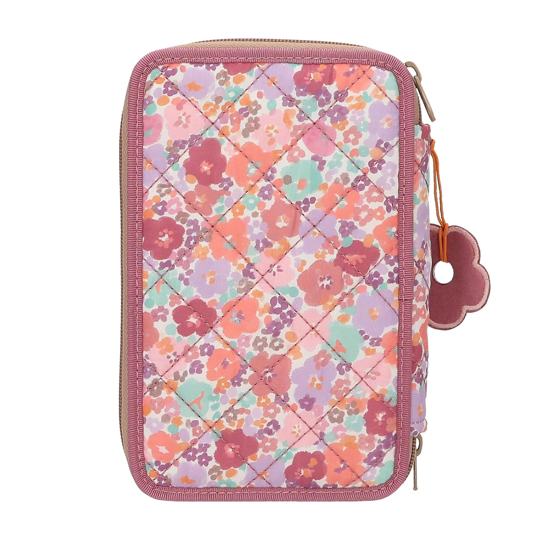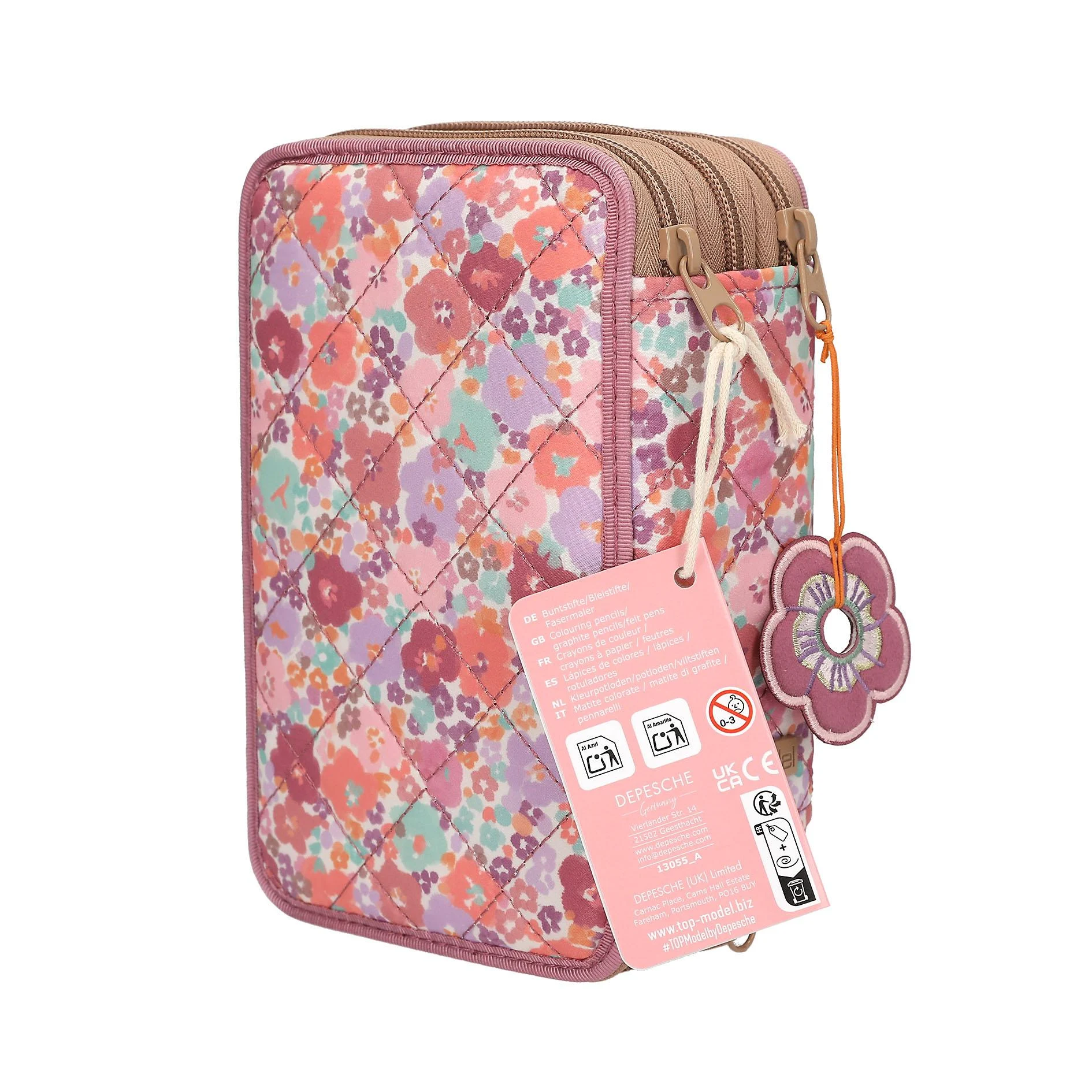 Фантастический цветочный узор 🌸 Этот пенал из новой дизайнерской серии TOPModel Floral украшен крупным изображением модели с очаровательной собачкой на передней части пенала ягодного цвета, а также красивым цветочным узором с модной ромбовидной стежкой по бокам и сзади. Приятный бонус: большой брелок "цветок" на молнии. Три отдельных отделения полностью укомплектованы 18 цветными карандашами и фломастерами в каждом, 2 обычными карандашами, точилкой, ластиком, линейкой, клеем-карандашом, ножницами и небольшим кармашком на липучке. Материал: 100% полиэстер В 7,5 x Ш 20,0 x Г 13,0 см Рекомендуется для детей от 6 лет и старше