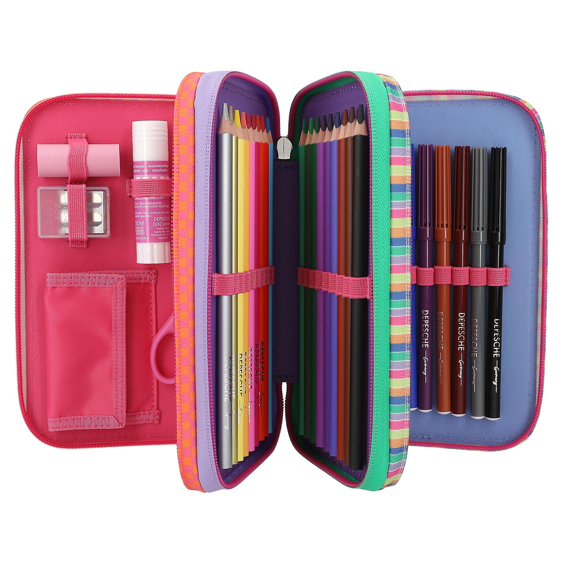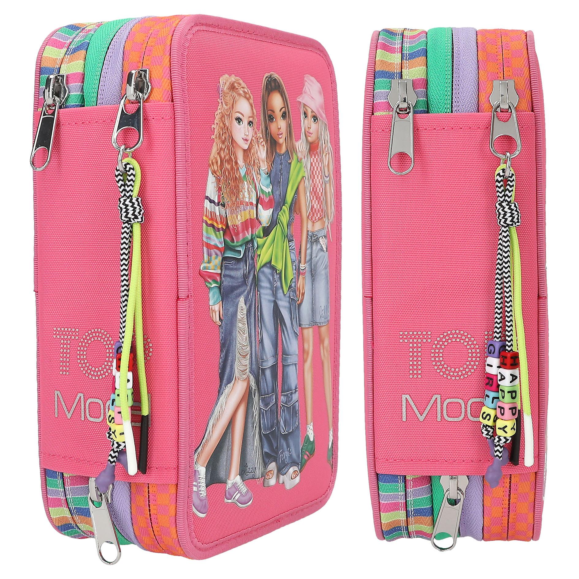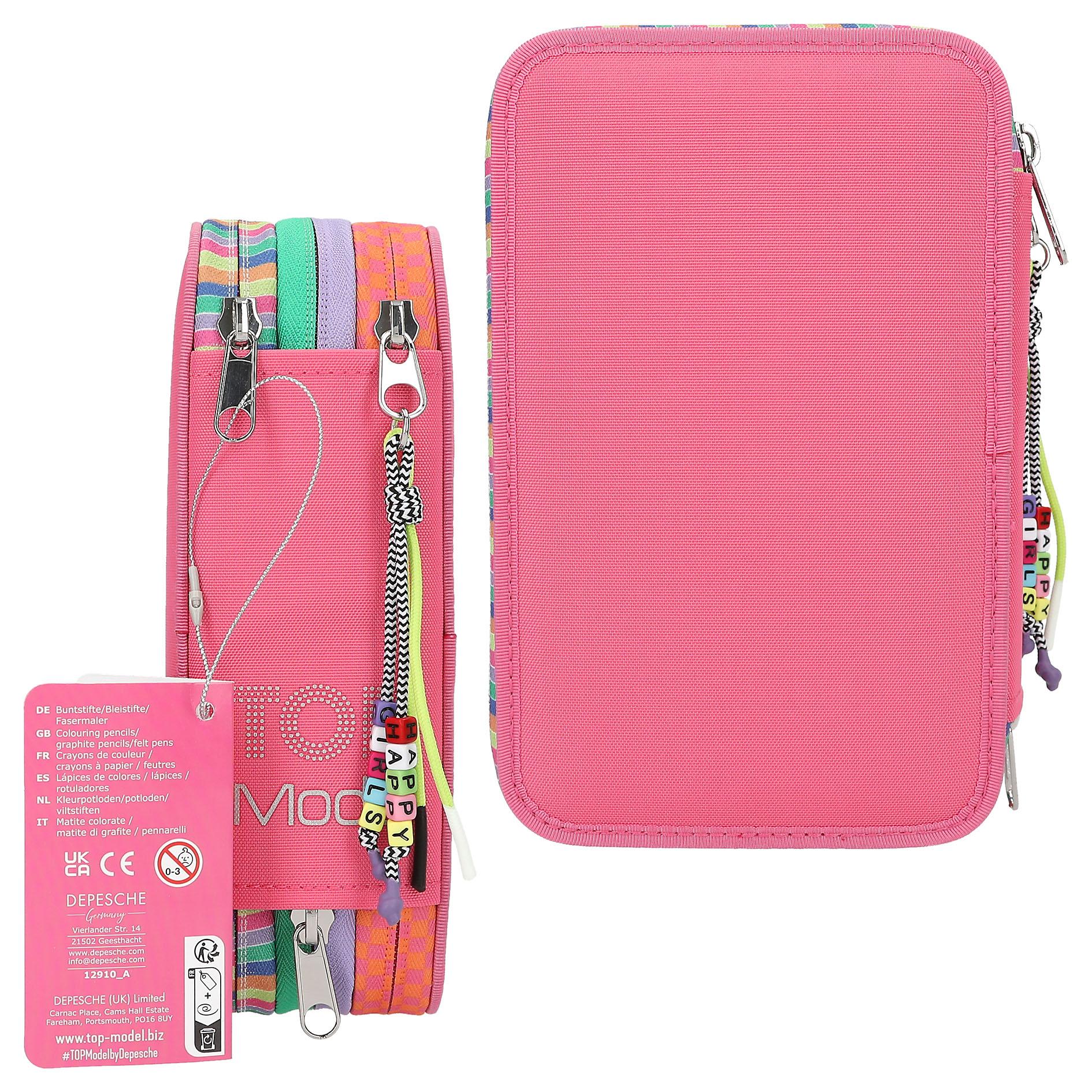 Яркий цвет делает тебя счастливым: розовый пенал TOPModel JOY имеет большой рисунок спереди, ремешки-молнии с разным рисунком и супер-классной молнией, выполненной из лент и бусин с буквами (HAPPY GIRLS). Три отдельных отделения пенала полностью заполнены 18 цветными карандашами и фломастерами, 2 карандашами, линейкой, точилкой, ластиком, ножницами, клеем-карандашом и небольшим кошельком на липучке. Материал: 100% ПЭС; ПВХ спереди; ПУ кулон Рекомендуемый возраст: от 6 лет В 4,5 х Ш 25,0 х Г 20,0 см